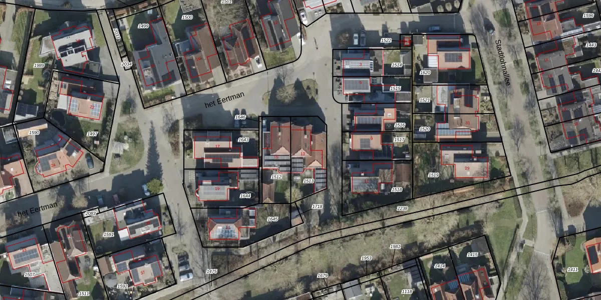 Het perceel waarop het Eertman 13 staat heeft een oppervlakte van 314 m². Dit is een groot perceel. De perceeloppervlakte wordt geregistreerd door het Kadaster. Gedetailleerde informatie over de maten van dit perceel kunt u vinden in het rapport Kadastrale kaart met maatvoering van het Eertman 13.