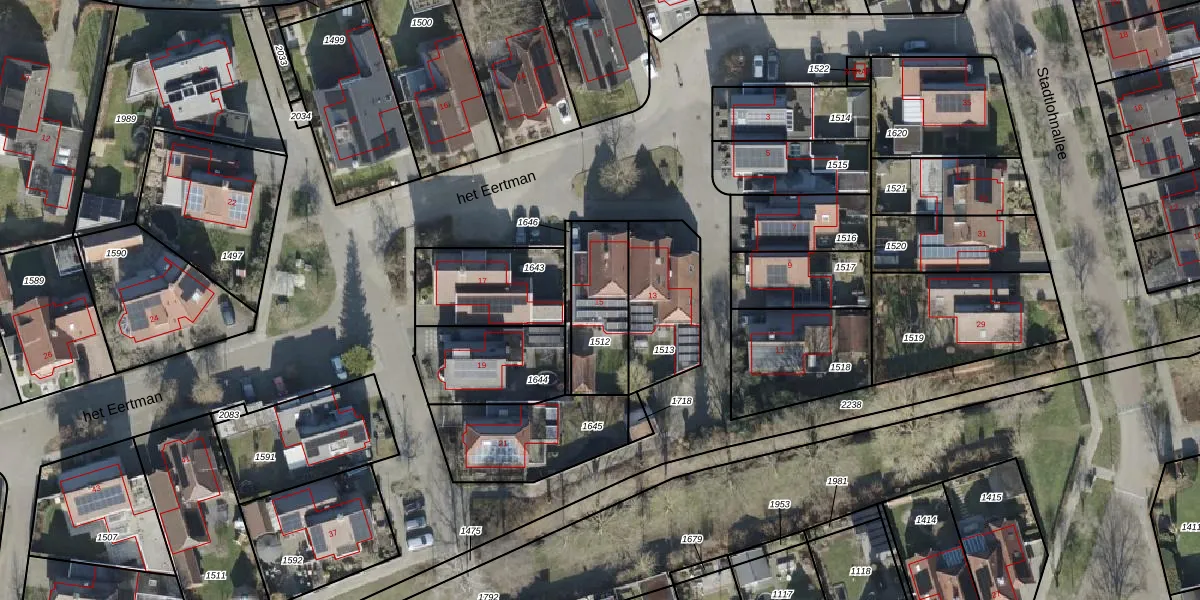 Het perceel waarop het Eertman 15 staat heeft een oppervlakte van 277 m². Dit is een middelgroot perceel. De perceeloppervlakte wordt geregistreerd door het Kadaster. Gedetailleerde informatie over de maten van dit perceel kunt u vinden in het rapport Kadastrale kaart met maatvoering van het Eertman 15.