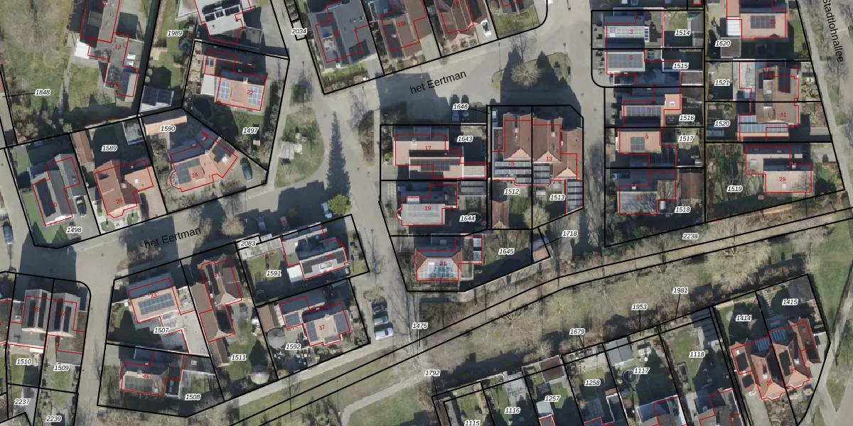 Het perceel waarop het Eertman 19 staat heeft een oppervlakte van 314 m². Dit is een groot perceel. De perceeloppervlakte wordt geregistreerd door het Kadaster. Gedetailleerde informatie over de maten van dit perceel kunt u vinden in het rapport Kadastrale kaart met maatvoering van het Eertman 19.