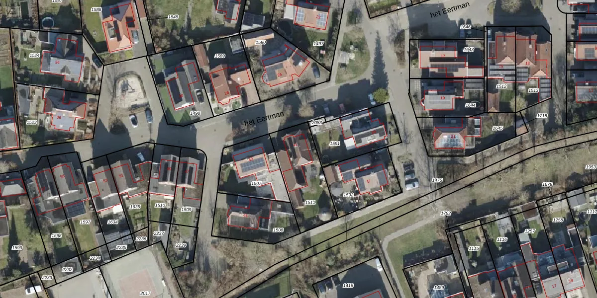Het perceel waarop het Eertman 41 staat heeft een oppervlakte van 465 m². Dit is een groot perceel. De perceeloppervlakte wordt geregistreerd door het Kadaster. Gedetailleerde informatie over de maten van dit perceel kunt u vinden in het rapport Kadastrale kaart met maatvoering van het Eertman 41.