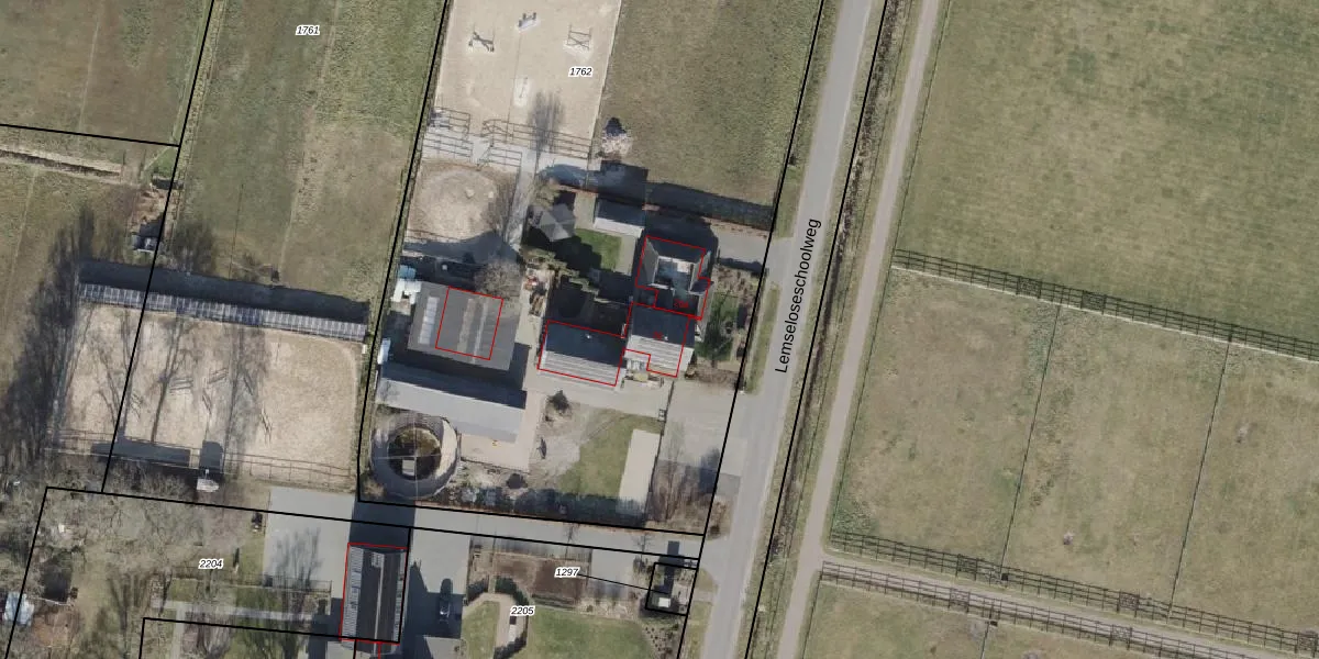 Het perceel waarop Lemseloseschoolweg 20 staat heeft een oppervlakte van 6930 m². Dit is een zeer groot perceel. De perceeloppervlakte wordt geregistreerd door het Kadaster. Gedetailleerde informatie over de maten van dit perceel kunt u vinden in het rapport Kadastrale kaart met maatvoering van Lemseloseschoolweg 20.