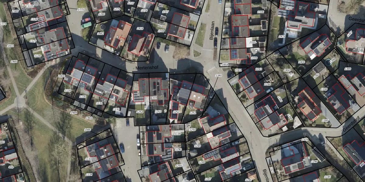 Het perceel waarop Mertenshof 1 staat heeft een oppervlakte van 302 m². Dit is een groot perceel. De perceeloppervlakte wordt geregistreerd door het Kadaster. Gedetailleerde informatie over de maten van dit perceel kunt u vinden in het rapport Kadastrale kaart met maatvoering van Mertenshof 1.