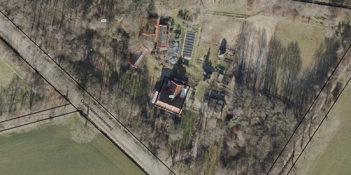 Oude Weerseloseweg 1 is gelegen op kadastraal perceel WSL02W393. Deze kadastrale aanduiding is uniek en wordt gebruikt door het Kadaster om eigendomsrechten en andere zakelijke rechten vast te leggen. Het perceel maakt onderdeel uit van de kadastrale gemeente Weerselo.