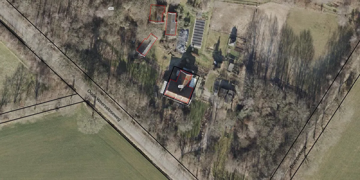 Oude Weerseloseweg 1-A is gelegen op kadastraal perceel WSL02W393. Deze kadastrale aanduiding is uniek en wordt gebruikt door het Kadaster om eigendomsrechten en andere zakelijke rechten vast te leggen. Het perceel maakt onderdeel uit van de kadastrale gemeente Weerselo.
