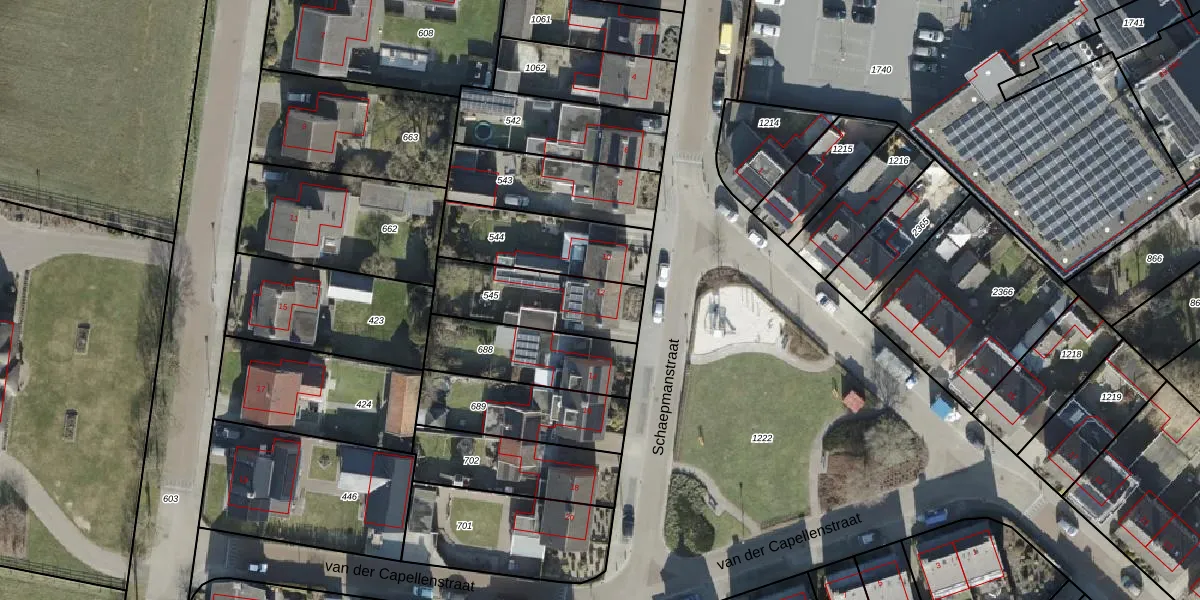 Het perceel waarop Schaepmanstraat 12 staat heeft een oppervlakte van 332 m². Dit is een groot perceel. De perceeloppervlakte wordt geregistreerd door het Kadaster. Gedetailleerde informatie over de maten van dit perceel kunt u vinden in het rapport Kadastrale kaart met maatvoering van Schaepmanstraat 12.