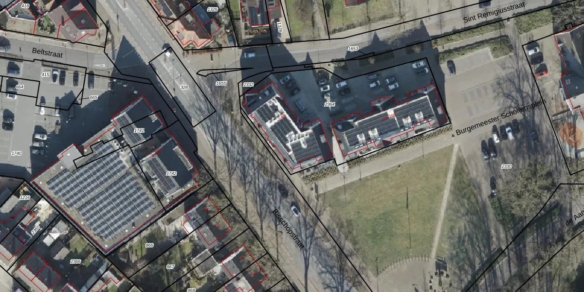 Het perceel waarop Sint Remigiusstraat 6 staat heeft een oppervlakte van 1815 m². Dit is een zeer groot perceel. De perceeloppervlakte wordt geregistreerd door het Kadaster. Gedetailleerde informatie over de maten van dit perceel kunt u vinden in het rapport Kadastrale kaart met maatvoering van Sint Remigiusstraat 6.