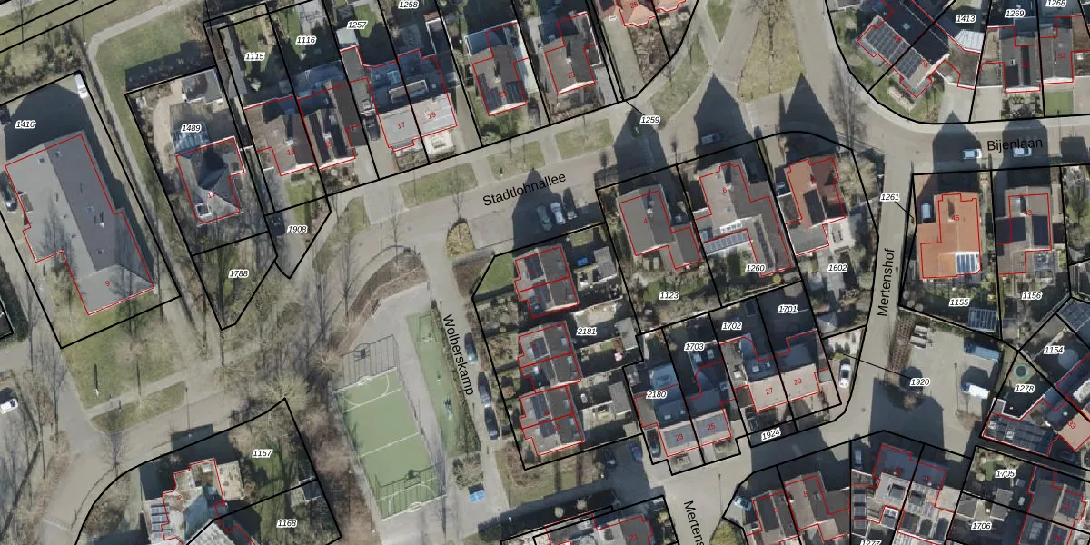 Het perceel waarop Wolberskamp 1 staat heeft een oppervlakte van 988 m². Dit is een groot perceel. De perceeloppervlakte wordt geregistreerd door het Kadaster. Gedetailleerde informatie over de maten van dit perceel kunt u vinden in het rapport Kadastrale kaart met maatvoering van Wolberskamp 1.