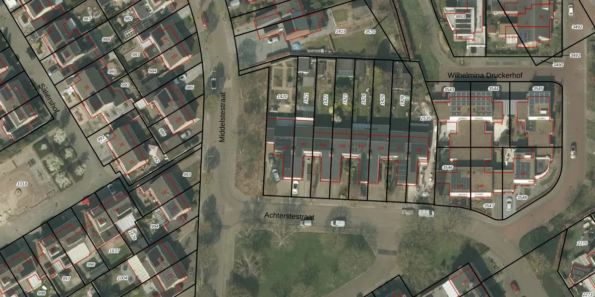 Gebruik de zoekbalk of klik op een perceel voor informatie over de adressen binnen dit perceel.