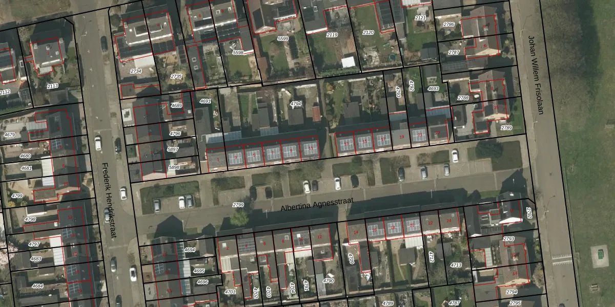 Het perceel waarop Albertina Agnesstraat 11 staat heeft een oppervlakte van 1428 m². Dit is een zeer groot perceel. De perceeloppervlakte wordt geregistreerd door het Kadaster. Gedetailleerde informatie over de maten van dit perceel kunt u vinden in het rapport Kadastrale kaart met maatvoering van Albertina Agnesstraat 11.