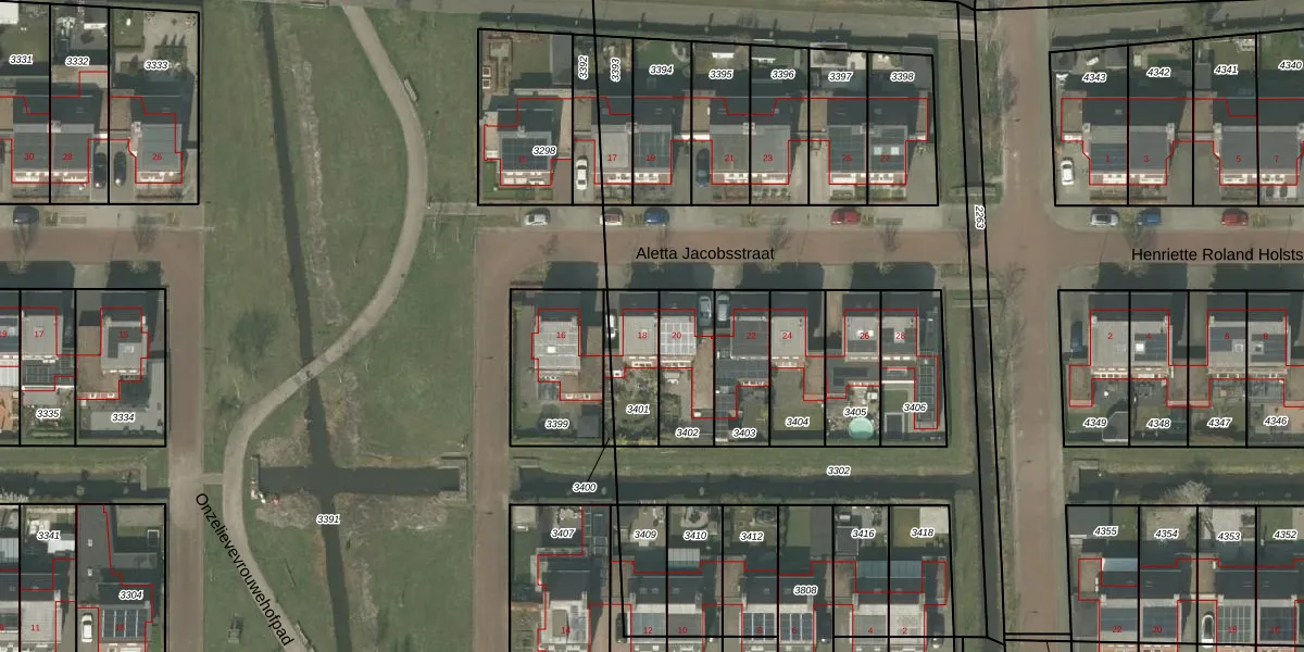 Gebruik de zoekbalk of klik op een perceel voor informatie over de adressen binnen dit perceel.