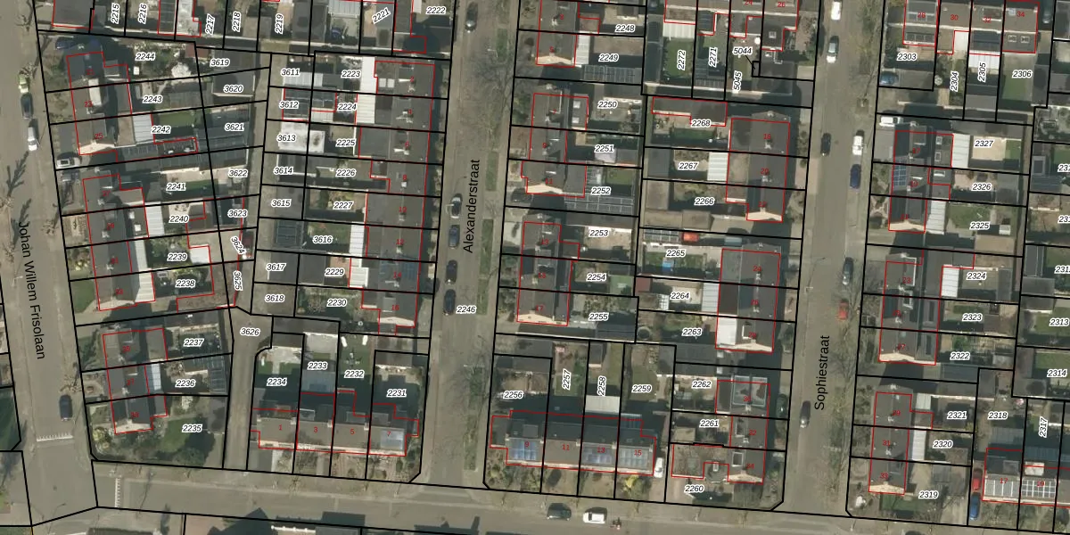 Gebruik de zoekbalk of klik op een perceel voor informatie over de adressen binnen dit perceel.
