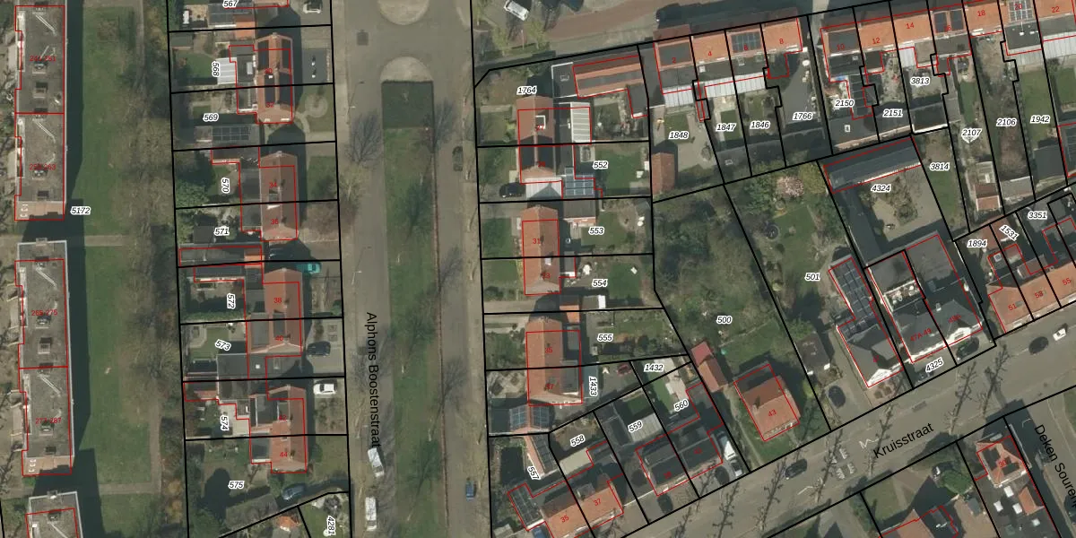 Het perceel waarop Alphons Boostenstraat 33 staat heeft een oppervlakte van 330 m². Dit is een groot perceel. De perceeloppervlakte wordt geregistreerd door het Kadaster. Gedetailleerde informatie over de maten van dit perceel kunt u vinden in het rapport Kadastrale kaart met maatvoering van Alphons Boostenstraat 33.