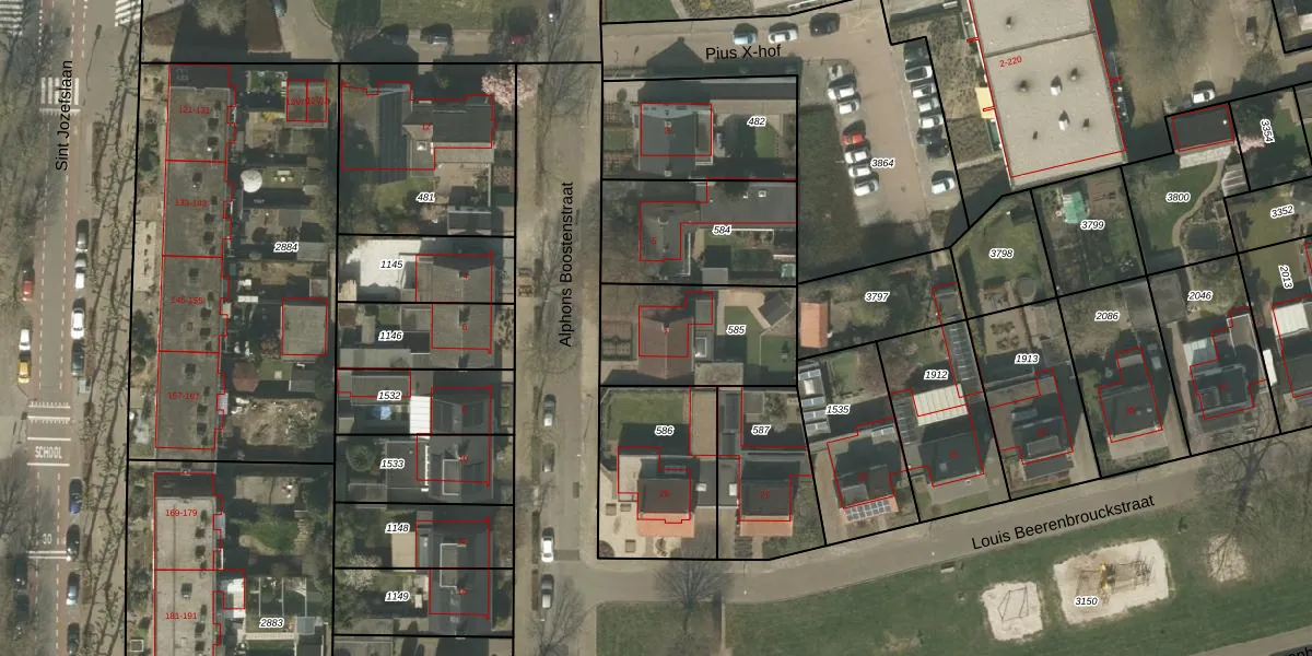 Het perceel waarop Alphons Boostenstraat 7 staat heeft een oppervlakte van 459 m². Dit is een groot perceel. De perceeloppervlakte wordt geregistreerd door het Kadaster. Gedetailleerde informatie over de maten van dit perceel kunt u vinden in het rapport Kadastrale kaart met maatvoering van Alphons Boostenstraat 7.