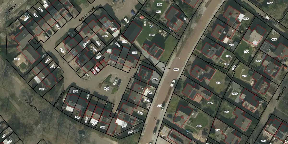 Gebruik de zoekbalk of klik op een perceel voor informatie over de adressen binnen dit perceel.