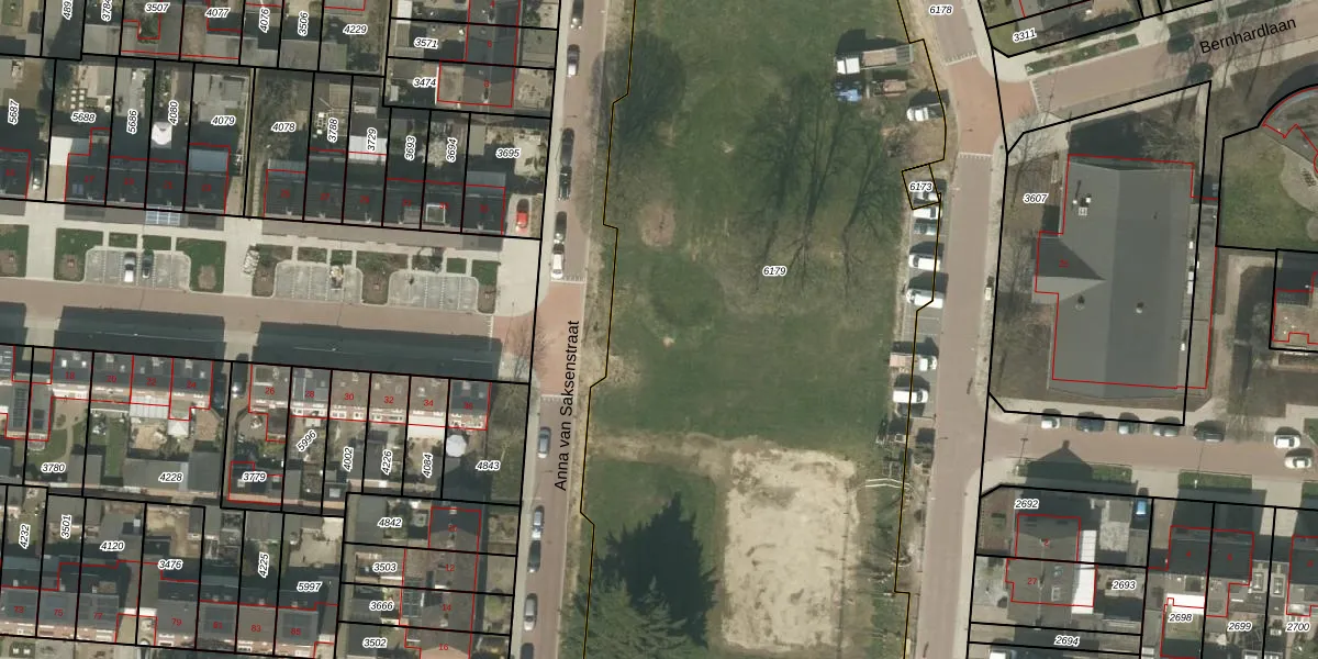 Het perceel waarop Anna van Saksenstraat 43 staat heeft een oppervlakte van 5389 m². Dit is een zeer groot perceel. De perceeloppervlakte wordt geregistreerd door het Kadaster. Gedetailleerde informatie over de maten van dit perceel kunt u vinden in het rapport Kadastrale kaart met maatvoering van Anna van Saksenstraat 43.