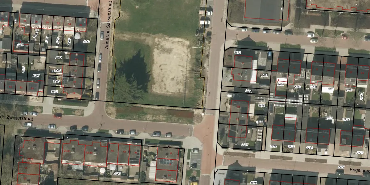 Het perceel waarop Anna van Saksenstraat 65 staat heeft een oppervlakte van 5389 m². Dit is een zeer groot perceel. De perceeloppervlakte wordt geregistreerd door het Kadaster. Gedetailleerde informatie over de maten van dit perceel kunt u vinden in het rapport Kadastrale kaart met maatvoering van Anna van Saksenstraat 65.