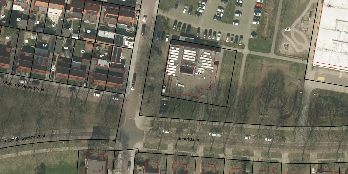Beatrixlaan 1 is gelegen op kadastraal perceel WEE01S5986. Deze kadastrale aanduiding is uniek en wordt gebruikt door het Kadaster om eigendomsrechten en andere zakelijke rechten vast te leggen. Het perceel maakt onderdeel uit van de kadastrale gemeente Weert.
