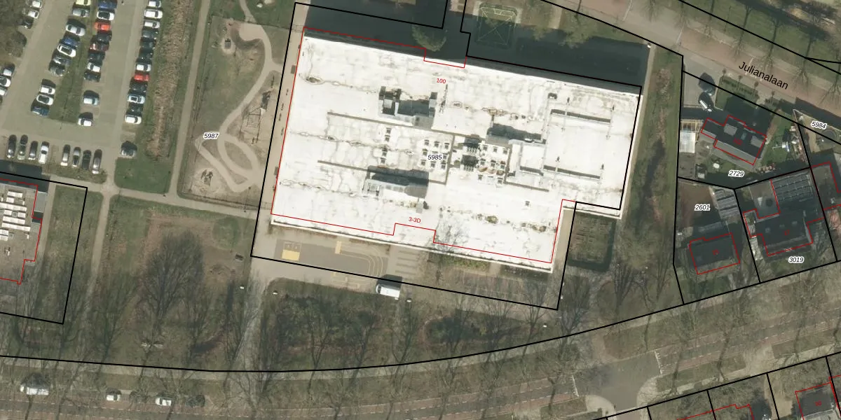 Het perceel waarop Beatrixlaan 3-C staat heeft een oppervlakte van 4730 m². Dit is een zeer groot perceel. De perceeloppervlakte wordt geregistreerd door het Kadaster. Gedetailleerde informatie over de maten van dit perceel kunt u vinden in het rapport Kadastrale kaart met maatvoering van Beatrixlaan 3-C.