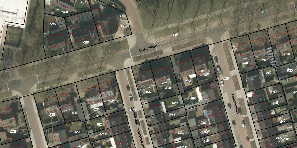 Beatrixlaan 34 is gelegen op kadastraal perceel WEE01S3182. Deze kadastrale aanduiding is uniek en wordt gebruikt door het Kadaster om eigendomsrechten en andere zakelijke rechten vast te leggen. Het perceel maakt onderdeel uit van de kadastrale gemeente Weert.
