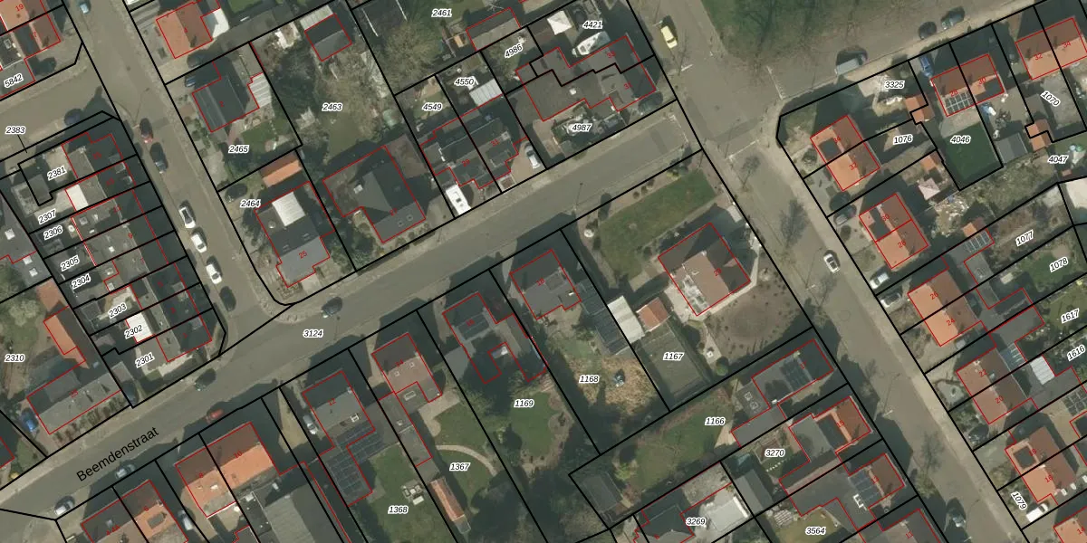 Gebruik de zoekbalk of klik op een perceel voor informatie over de adressen binnen dit perceel.