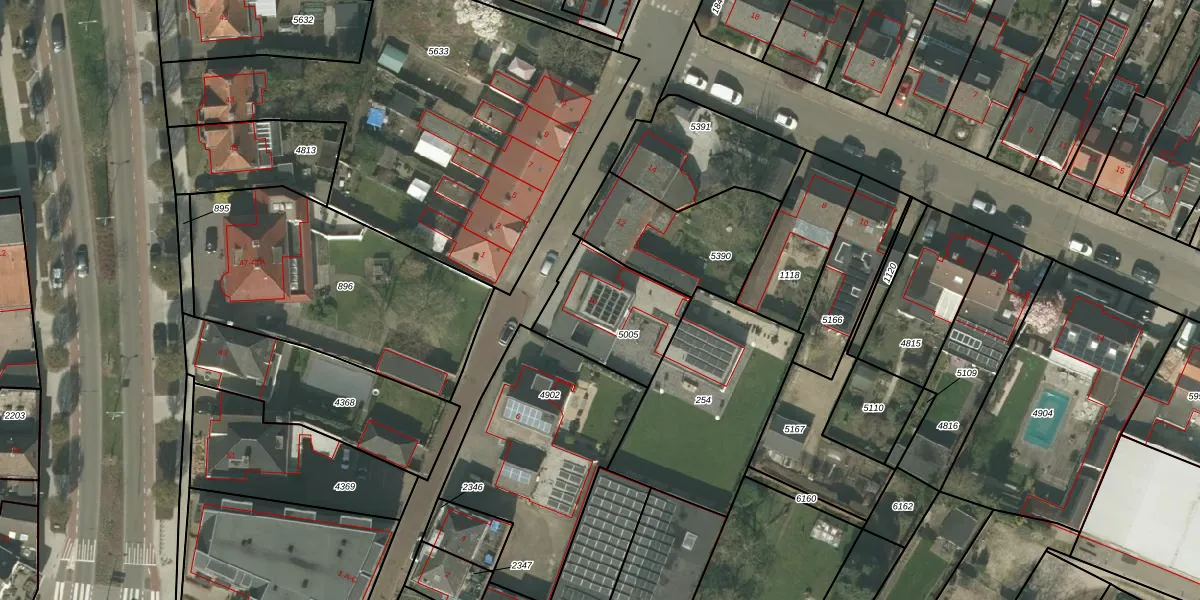 Gebruik de zoekbalk of klik op een perceel voor informatie over de adressen binnen dit perceel.