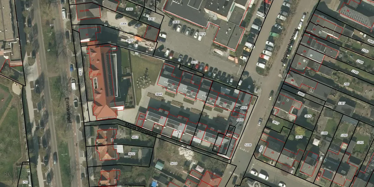 Het perceel waarop Begijnenhofstraat 27 staat heeft een oppervlakte van 2505 m². Dit is een zeer groot perceel. De perceeloppervlakte wordt geregistreerd door het Kadaster. Gedetailleerde informatie over de maten van dit perceel kunt u vinden in het rapport Kadastrale kaart met maatvoering van Begijnenhofstraat 27.