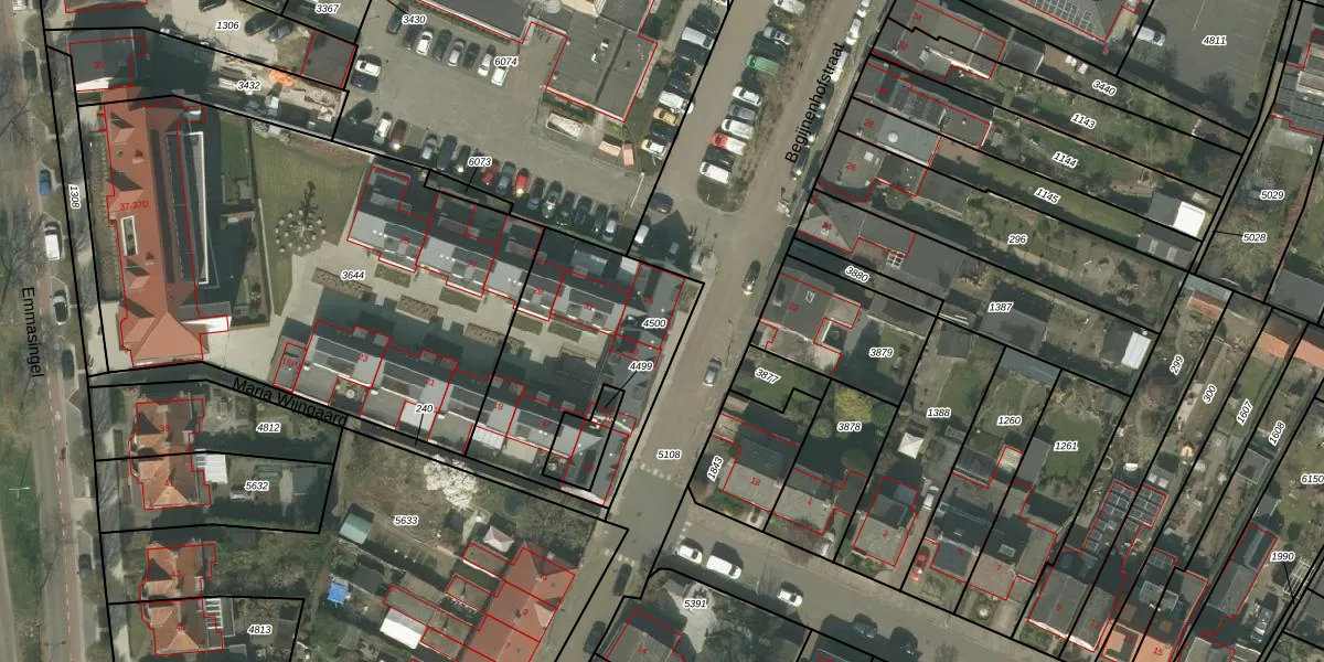 Het perceel waarop Begijnenhofstraat 35 staat heeft een oppervlakte van 797 m². Dit is een groot perceel. De perceeloppervlakte wordt geregistreerd door het Kadaster. Gedetailleerde informatie over de maten van dit perceel kunt u vinden in het rapport Kadastrale kaart met maatvoering van Begijnenhofstraat 35.