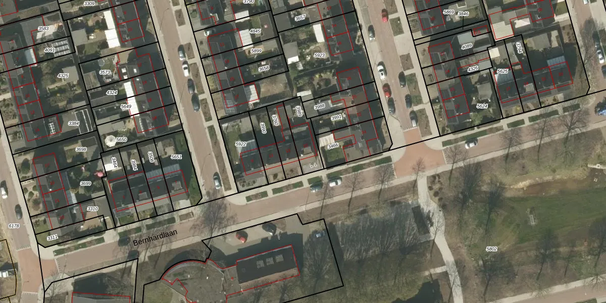 Het perceel waarop Bernhardlaan 15 staat heeft een oppervlakte van 170 m². Dit is een middelgroot perceel. De perceeloppervlakte wordt geregistreerd door het Kadaster. Gedetailleerde informatie over de maten van dit perceel kunt u vinden in het rapport Kadastrale kaart met maatvoering van Bernhardlaan 15.