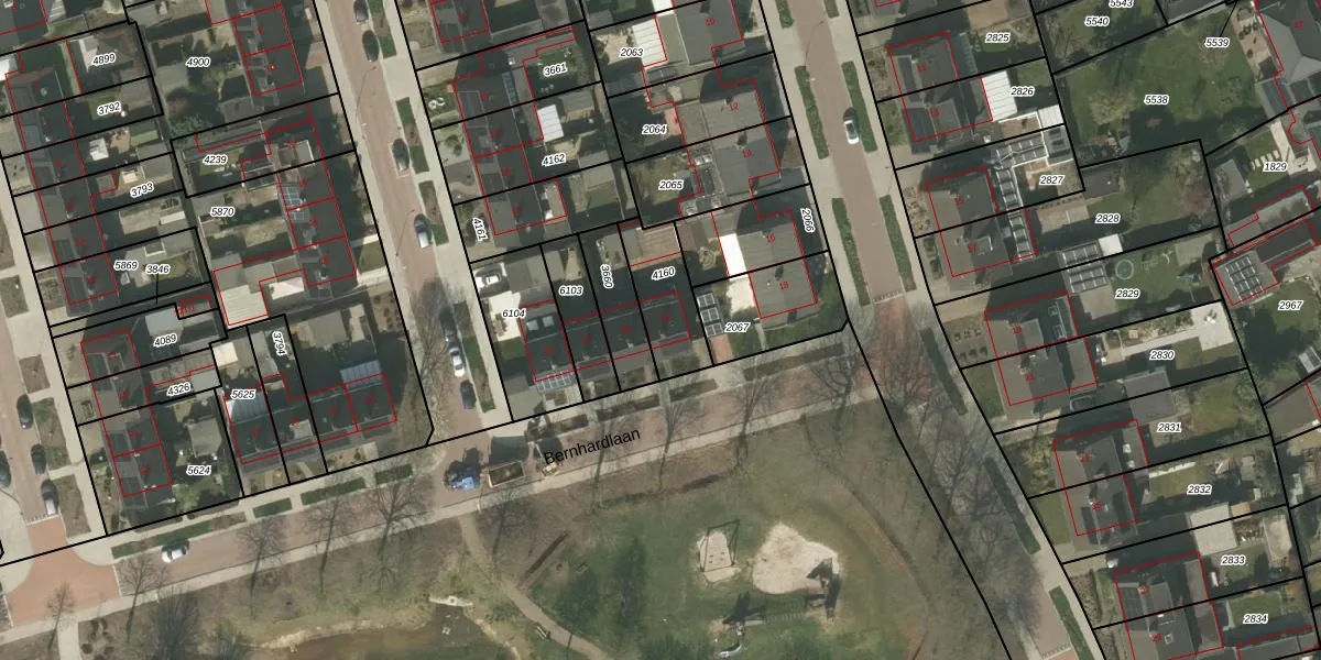 Het perceel waarop Bernhardlaan 31 staat heeft een oppervlakte van 196 m². Dit is een middelgroot perceel. De perceeloppervlakte wordt geregistreerd door het Kadaster. Gedetailleerde informatie over de maten van dit perceel kunt u vinden in het rapport Kadastrale kaart met maatvoering van Bernhardlaan 31.