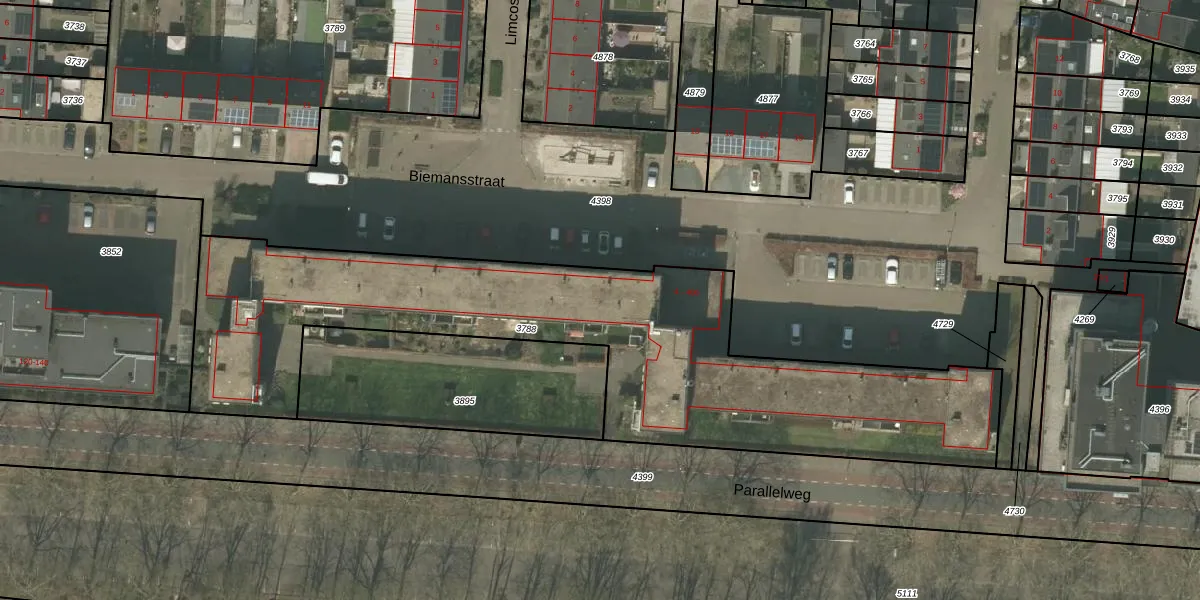 Het perceel waarop Biemansstraat 18-A staat heeft een oppervlakte van 2495 m². Dit is een zeer groot perceel. De perceeloppervlakte wordt geregistreerd door het Kadaster. Gedetailleerde informatie over de maten van dit perceel kunt u vinden in het rapport Kadastrale kaart met maatvoering van Biemansstraat 18-A.