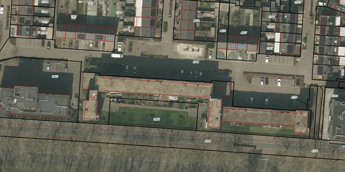 Het perceel waarop Biemansstraat 210 staat heeft een oppervlakte van 2495 m². Dit is een zeer groot perceel. De perceeloppervlakte wordt geregistreerd door het Kadaster. Gedetailleerde informatie over de maten van dit perceel kunt u vinden in het rapport Kadastrale kaart met maatvoering van Biemansstraat 210.