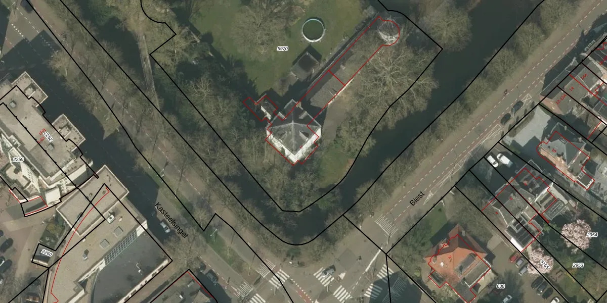 Het perceel waarop Biest 1 staat heeft een oppervlakte van 5875 m². Dit is een zeer groot perceel. De perceeloppervlakte wordt geregistreerd door het Kadaster. Gedetailleerde informatie over de maten van dit perceel kunt u vinden in het rapport Kadastrale kaart met maatvoering van Biest 1.