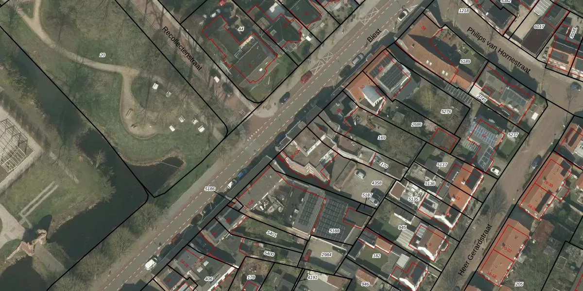 Het perceel waarop Biest 34 staat heeft een oppervlakte van 535 m². Dit is een groot perceel. De perceeloppervlakte wordt geregistreerd door het Kadaster. Gedetailleerde informatie over de maten van dit perceel kunt u vinden in het rapport Kadastrale kaart met maatvoering van Biest 34.