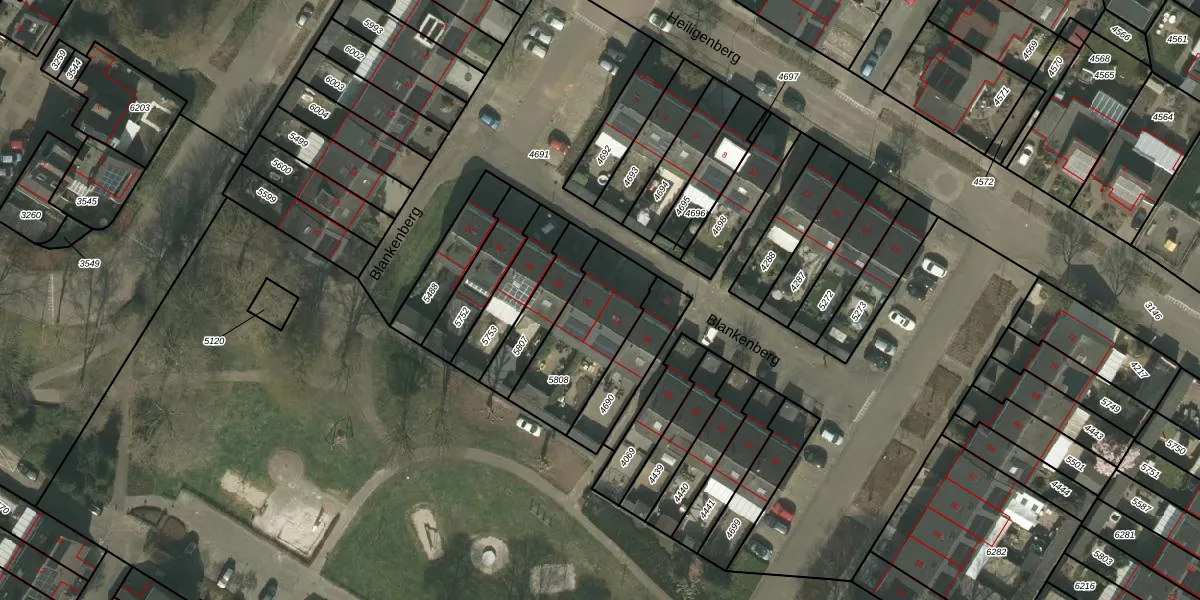Het perceel waarop Blankenberg 32 staat heeft een oppervlakte van 355 m². Dit is een groot perceel. De perceeloppervlakte wordt geregistreerd door het Kadaster. Gedetailleerde informatie over de maten van dit perceel kunt u vinden in het rapport Kadastrale kaart met maatvoering van Blankenberg 32.