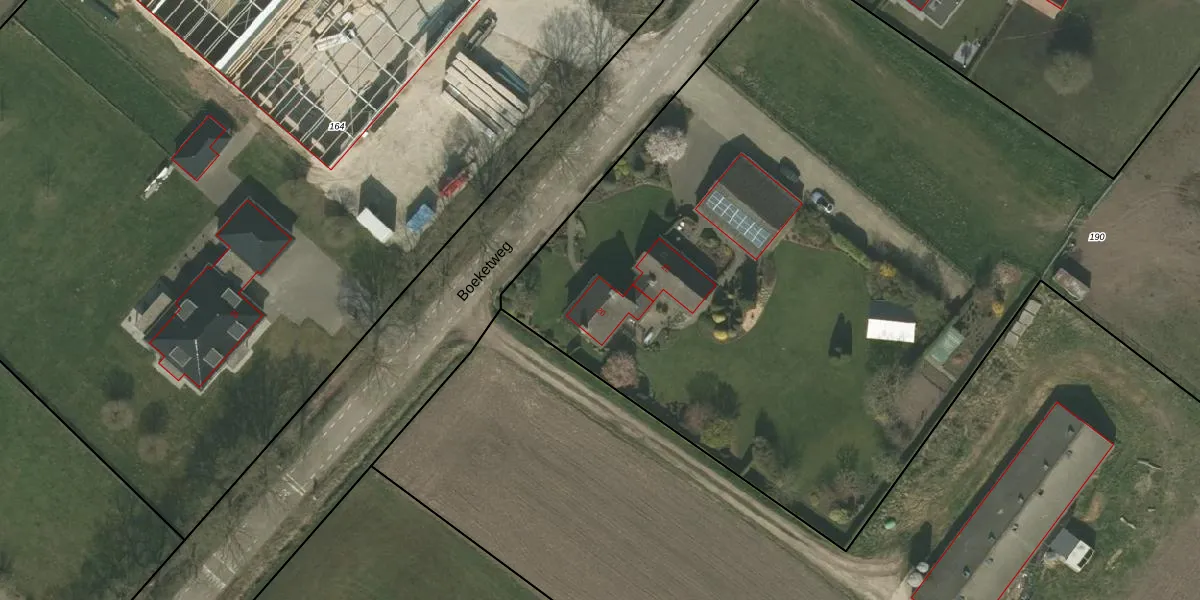Het perceel waarop Boeketweg 20 staat heeft een oppervlakte van 1,2 ha. Dit is een zeer groot perceel. De perceeloppervlakte wordt geregistreerd door het Kadaster. Gedetailleerde informatie over de maten van dit perceel kunt u vinden in het rapport Kadastrale kaart met maatvoering van Boeketweg 20.