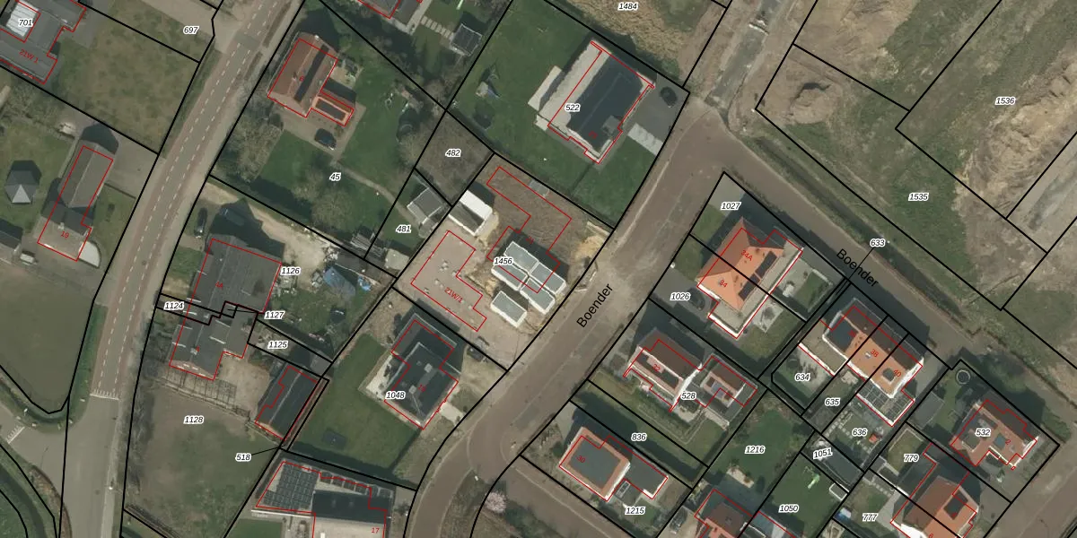 Het perceel waarop Boender 21 staat heeft een oppervlakte van 866 m². Dit is een groot perceel. De perceeloppervlakte wordt geregistreerd door het Kadaster. Gedetailleerde informatie over de maten van dit perceel kunt u vinden in het rapport Kadastrale kaart met maatvoering van Boender 21.