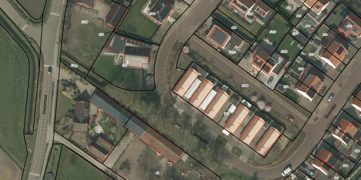 Het perceel waarop Boender 24 staat heeft een oppervlakte van 1272 m². Dit is een zeer groot perceel. De perceeloppervlakte wordt geregistreerd door het Kadaster. Gedetailleerde informatie over de maten van dit perceel kunt u vinden in het rapport Kadastrale kaart met maatvoering van Boender 24.