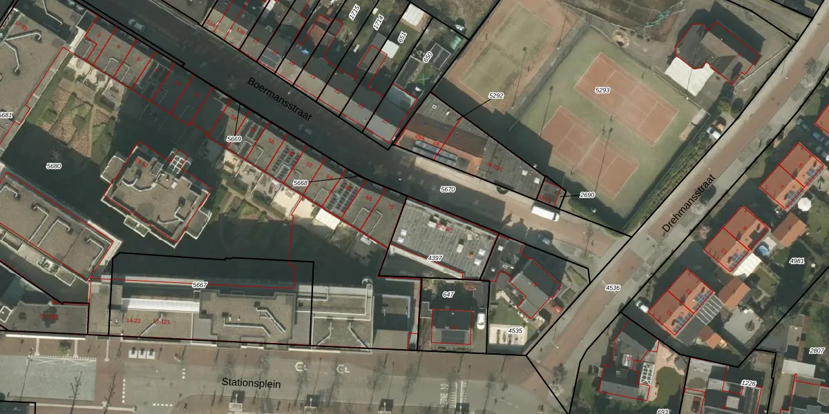 Het perceel waarop Boermansstraat 72 staat heeft een oppervlakte van 390 m². Dit is een groot perceel. De perceeloppervlakte wordt geregistreerd door het Kadaster. Gedetailleerde informatie over de maten van dit perceel kunt u vinden in het rapport Kadastrale kaart met maatvoering van Boermansstraat 72.