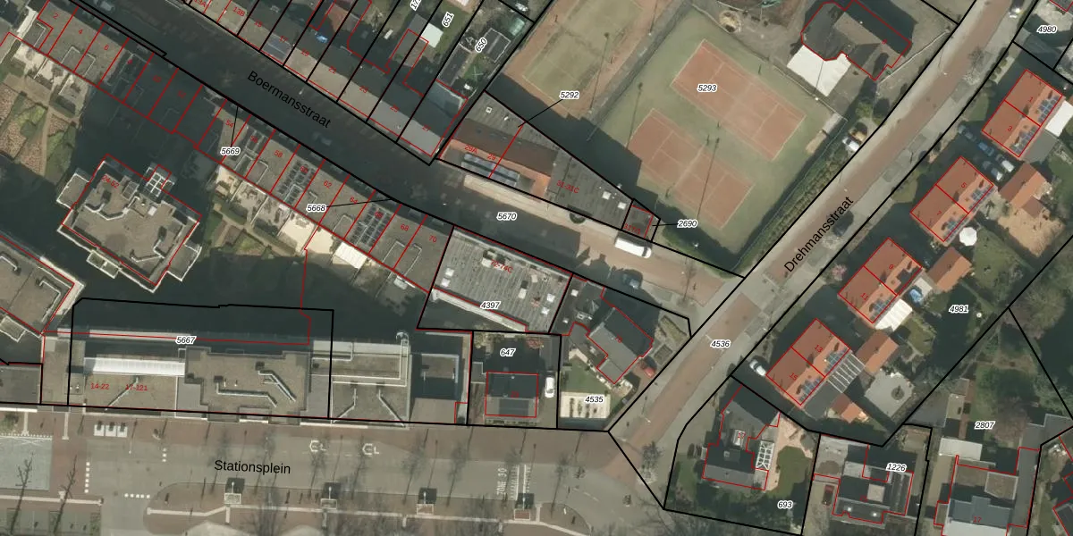 Het perceel waarop Boermansstraat 74-B staat heeft een oppervlakte van 390 m². Dit is een groot perceel. De perceeloppervlakte wordt geregistreerd door het Kadaster. Gedetailleerde informatie over de maten van dit perceel kunt u vinden in het rapport Kadastrale kaart met maatvoering van Boermansstraat 74-B.