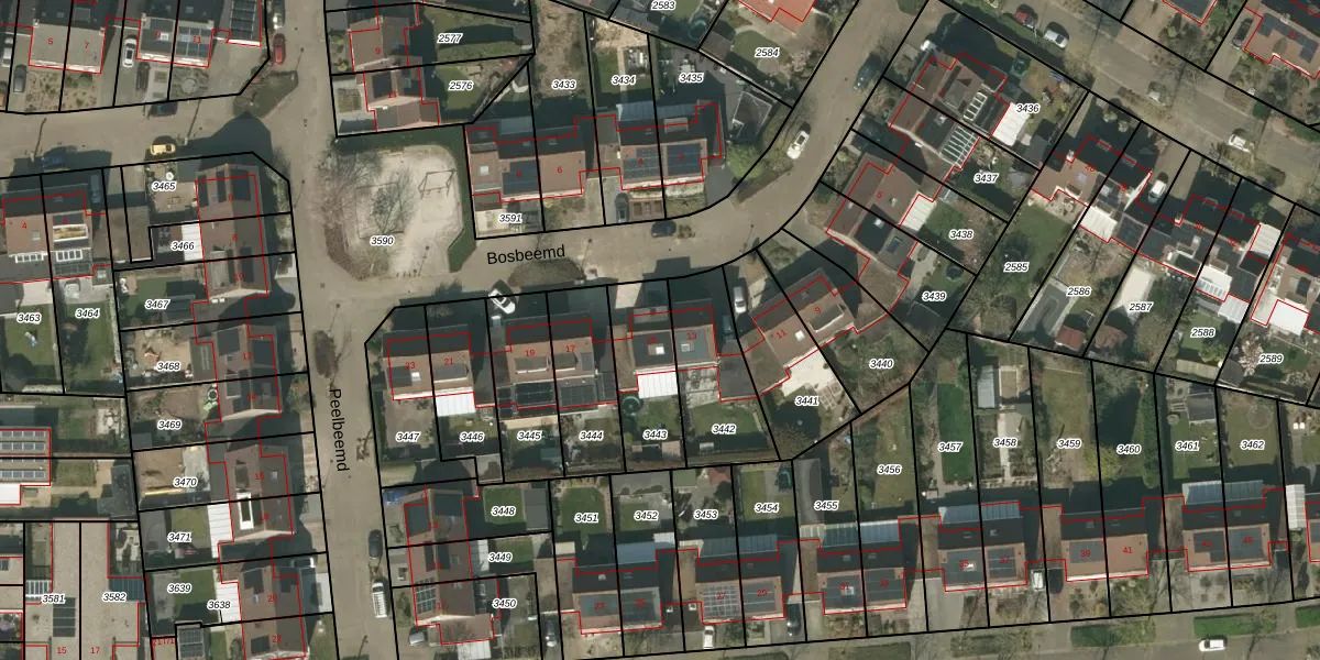 Gebruik de zoekbalk of klik op een perceel voor informatie over de adressen binnen dit perceel.