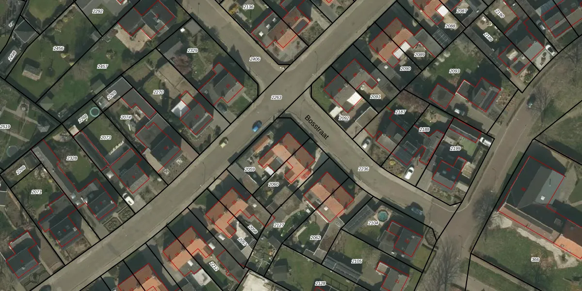 Bosstraat 9 is gelegen op kadastraal perceel WEE01B2059. Deze kadastrale aanduiding is uniek en wordt gebruikt door het Kadaster om eigendomsrechten en andere zakelijke rechten vast te leggen. Het perceel maakt onderdeel uit van de kadastrale gemeente Weert.
