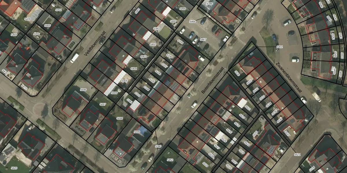 Gebruik de zoekbalk of klik op een perceel voor informatie over de adressen binnen dit perceel.
