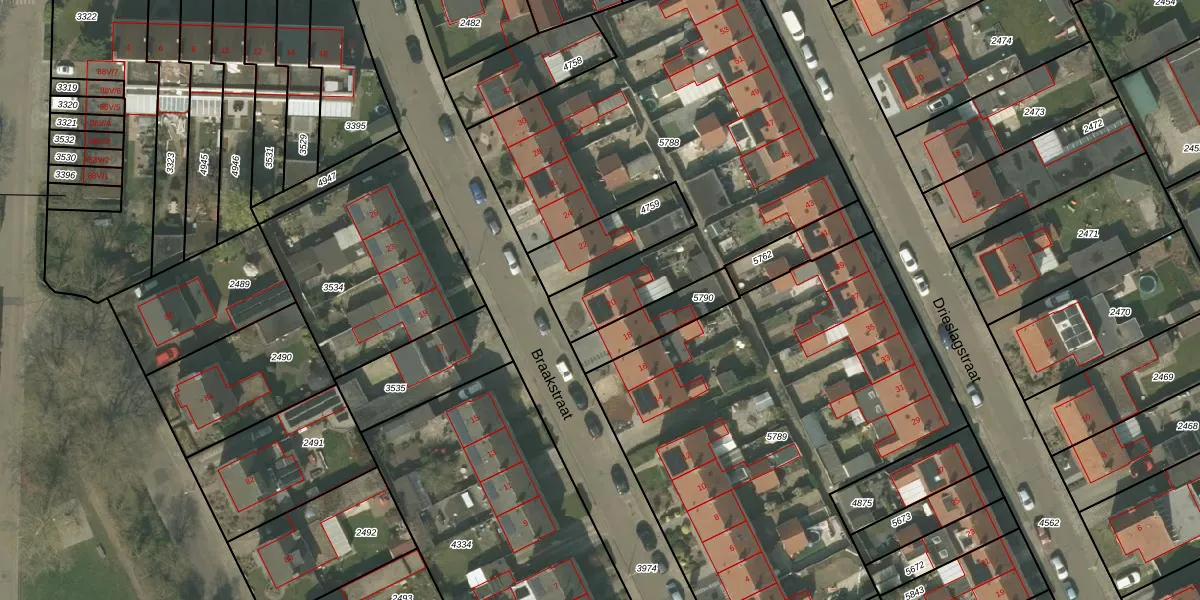 Het perceel waarop Braakstraat 20 staat heeft een oppervlakte van 2058 m². Dit is een zeer groot perceel. De perceeloppervlakte wordt geregistreerd door het Kadaster. Gedetailleerde informatie over de maten van dit perceel kunt u vinden in het rapport Kadastrale kaart met maatvoering van Braakstraat 20.