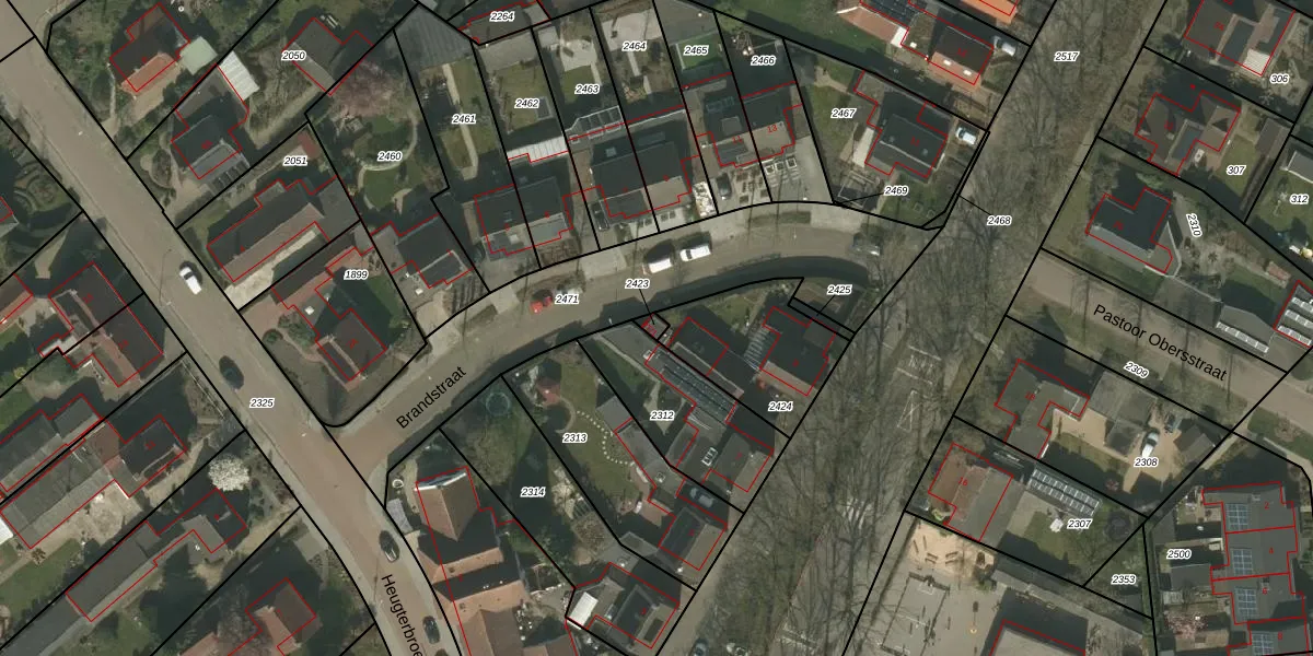 Brandstraat 2-T-1 is gelegen op kadastraal perceel WEE01B2423. Deze kadastrale aanduiding is uniek en wordt gebruikt door het Kadaster om eigendomsrechten en andere zakelijke rechten vast te leggen. Het perceel maakt onderdeel uit van de kadastrale gemeente Weert.