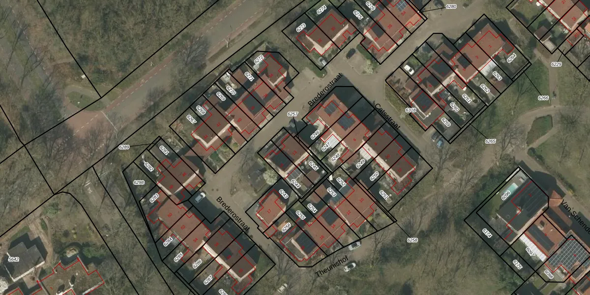 Brederostraat 13 is gelegen op kadastraal perceel WEE01P6245. Deze kadastrale aanduiding is uniek en wordt gebruikt door het Kadaster om eigendomsrechten en andere zakelijke rechten vast te leggen. Het perceel maakt onderdeel uit van de kadastrale gemeente Weert.