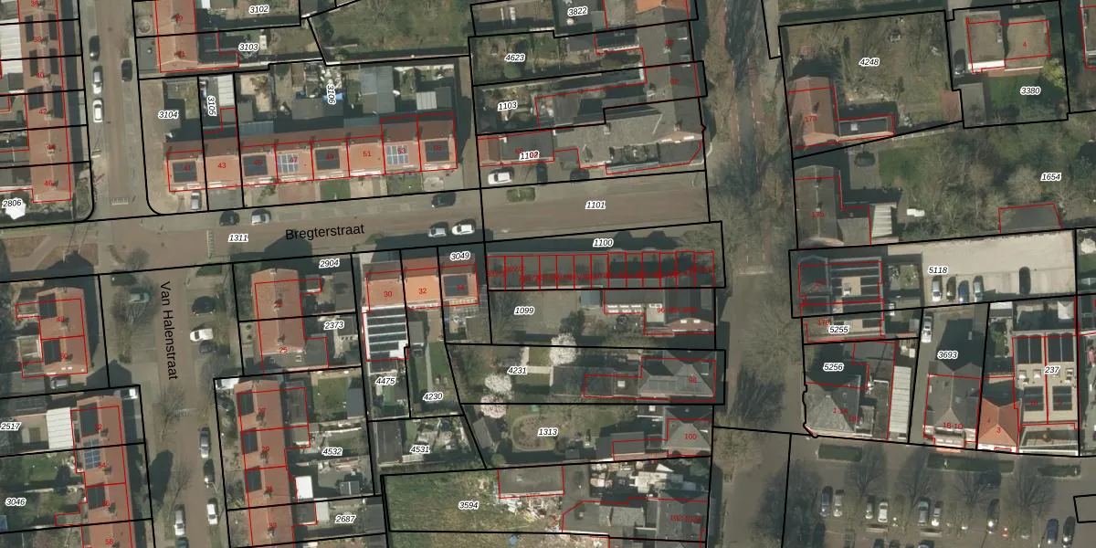 Bregterstraat 36-V-4 is gelegen op kadastraal perceel WEE01R1100. Deze kadastrale aanduiding is uniek en wordt gebruikt door het Kadaster om eigendomsrechten en andere zakelijke rechten vast te leggen. Het perceel maakt onderdeel uit van de kadastrale gemeente Weert.