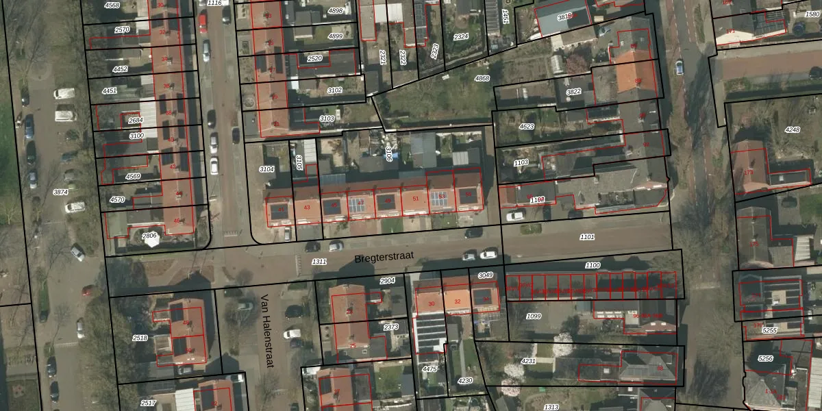 Bregterstraat 51 is gelegen op kadastraal perceel WEE01R3106. Deze kadastrale aanduiding is uniek en wordt gebruikt door het Kadaster om eigendomsrechten en andere zakelijke rechten vast te leggen. Het perceel maakt onderdeel uit van de kadastrale gemeente Weert.