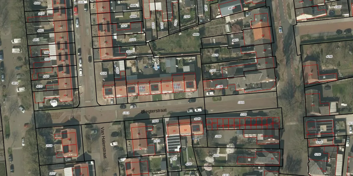 Bregterstraat 53 is gelegen op kadastraal perceel WEE01R3106. Deze kadastrale aanduiding is uniek en wordt gebruikt door het Kadaster om eigendomsrechten en andere zakelijke rechten vast te leggen. Het perceel maakt onderdeel uit van de kadastrale gemeente Weert.