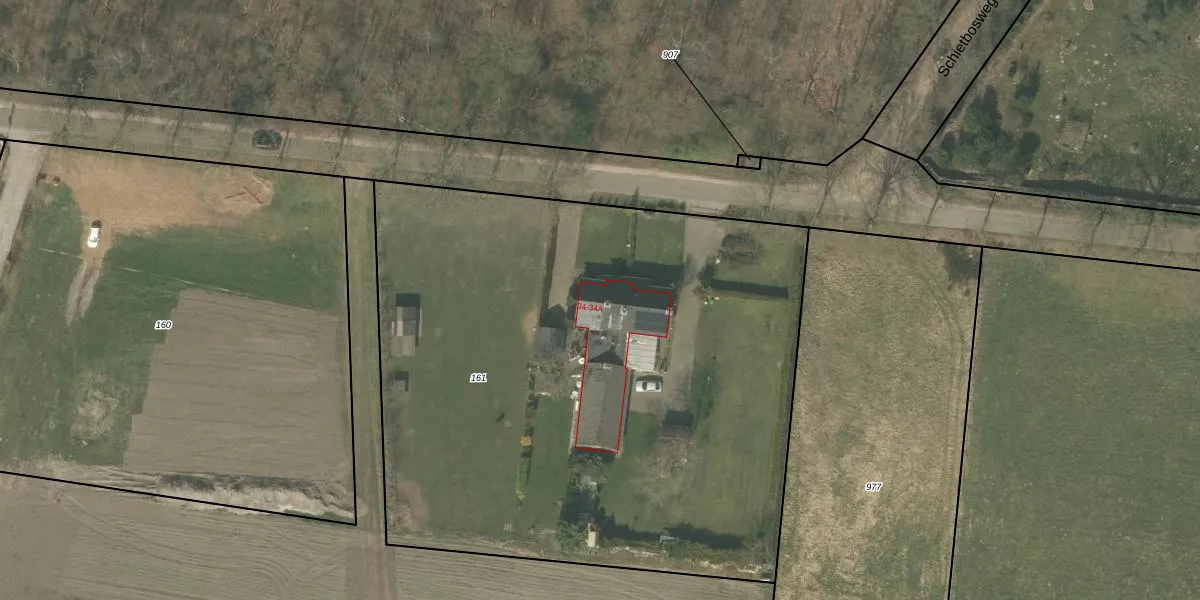Het perceel waarop Breijbaan 34 staat heeft een oppervlakte van 4126 m². Dit is een zeer groot perceel. De perceeloppervlakte wordt geregistreerd door het Kadaster. Gedetailleerde informatie over de maten van dit perceel kunt u vinden in het rapport Kadastrale kaart met maatvoering van Breijbaan 34.