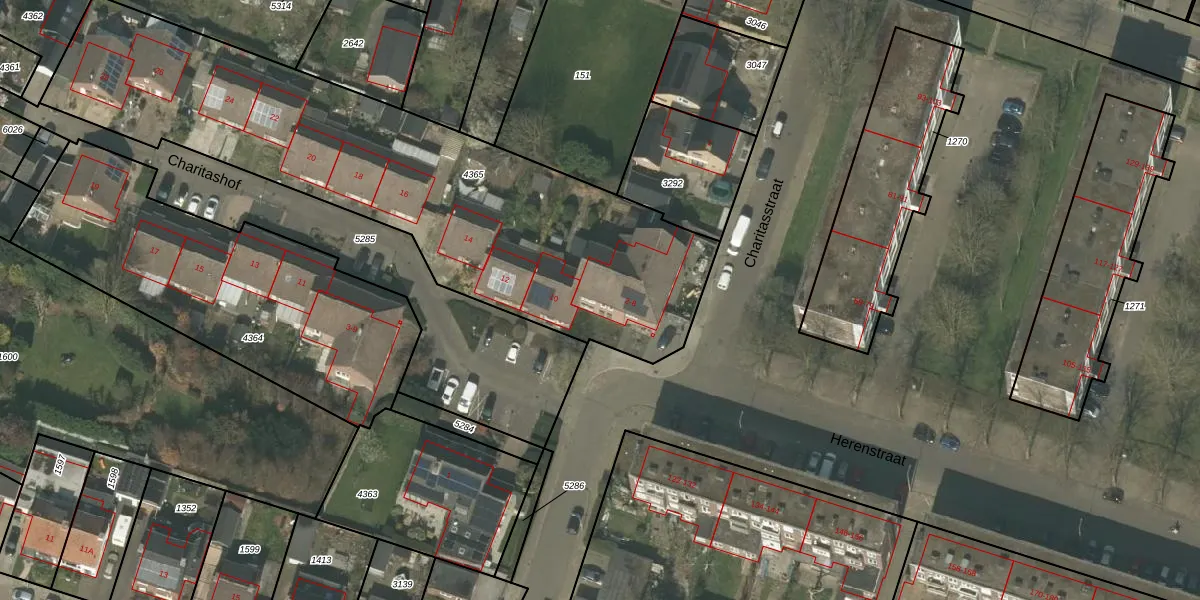 Het perceel waarop Charitashof 4 staat heeft een oppervlakte van 2410 m². Dit is een zeer groot perceel. De perceeloppervlakte wordt geregistreerd door het Kadaster. Gedetailleerde informatie over de maten van dit perceel kunt u vinden in het rapport Kadastrale kaart met maatvoering van Charitashof 4.